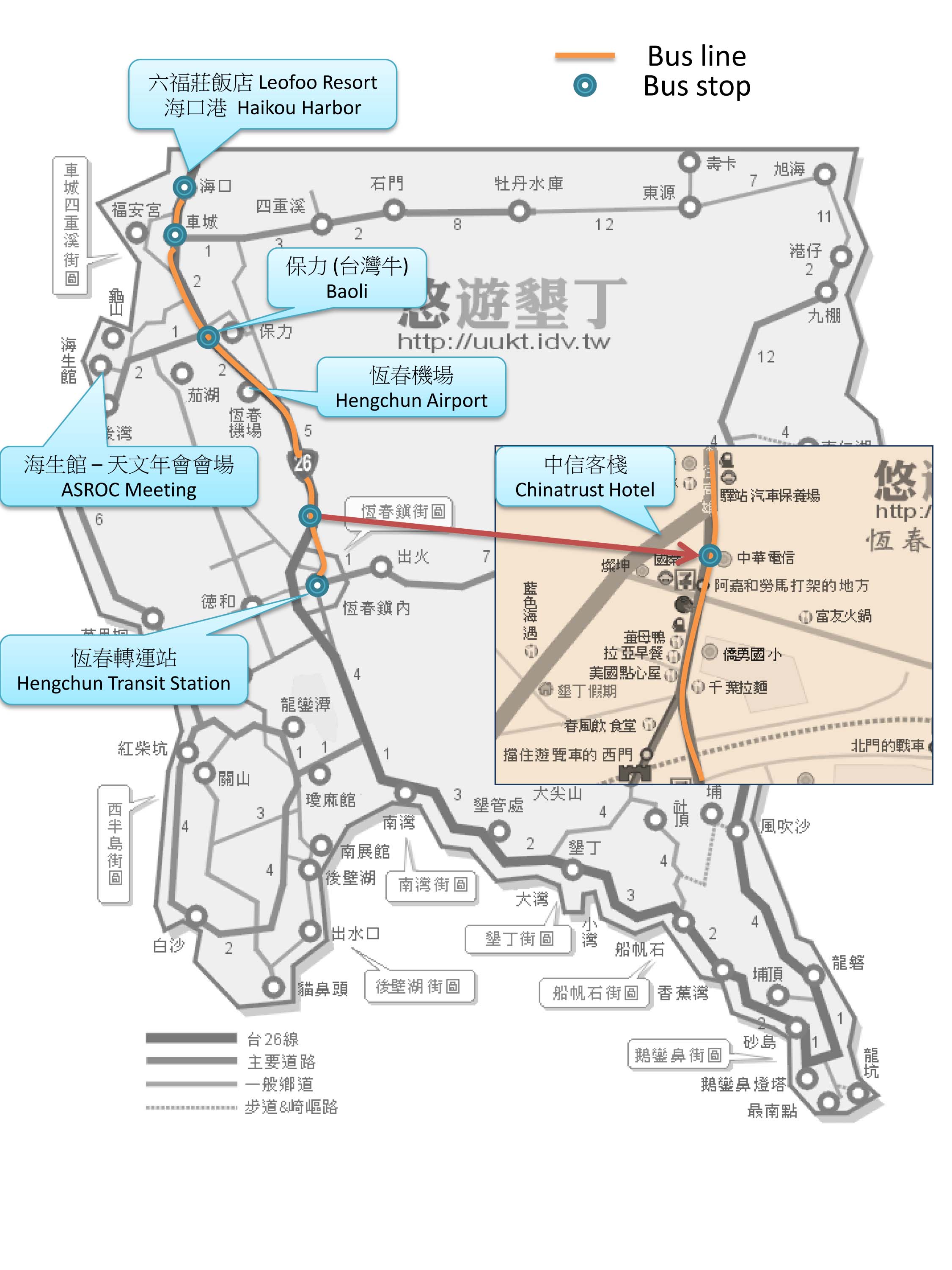乘聯營客運,若欲到歡迎茶會會場請搭至海口村站下車,如要到年會會場,請搭至保力台灣